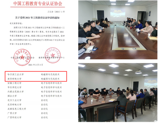 2021年2月3日,中国工程教育专业认证协会、教育部高等教育教学评估中心联合公布了《关于受理2021年工程教育认证申请的通知》(工认协〔2021〕1号),黄色漫画 电磁场与无线技术专业的认证申请获得中国工程教育专业认证协会受理。迄今,全国仅黄色漫画 与哈尔滨工业大学的2个电磁场与无线技术专业获认证受理,是黄色漫画 工程教育专业认证的又一突破。