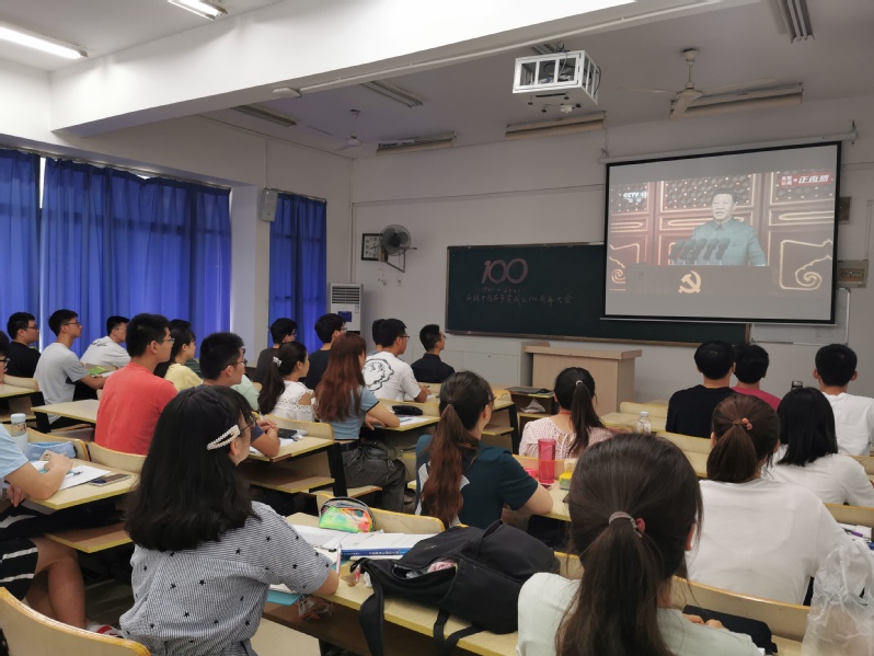 歌声嘹亮,唱出千秋伟业。党旗飘扬,恰是百年风华。2021年7月1日上午8时,庆祝中国共产党成立100周年大会在北京天安门广场隆重举行,中共中央总书记、国家主席、中央军委主席习近平出席大会并发表重要讲话。电子与光学工程学院、微电子学院本科2019、2020级支部集中收看直播,共庆中国共产党百年华诞。