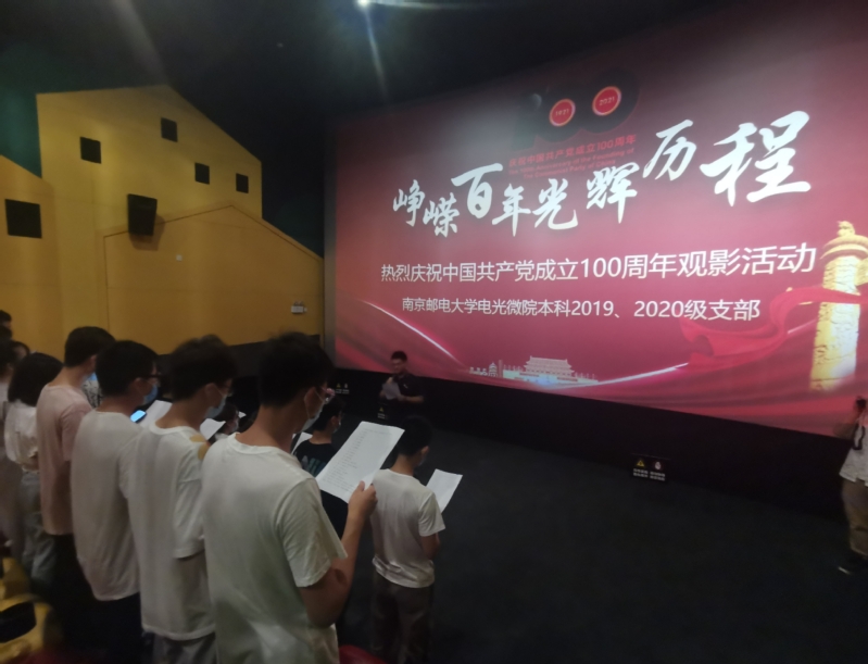 为庆祝中国共产党成立100周年,进一步深入贯彻习近平总书记关于党史学习的重要指示精神,坚定当代大学生矢志报国的决心,7月4日,电子与光学工程学院、微电子学院本科2019、2020级支部开展“观影铸魂学党史,不忘初心薪火传”观影活动,支部成员观看了献礼建党100周年电影《1921》。