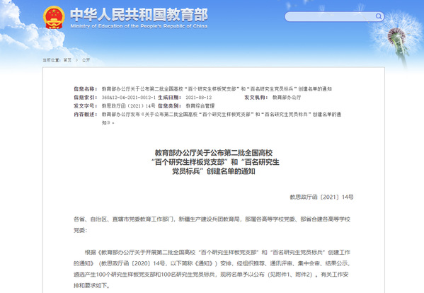 8月20日,第二批全国高校“百个研究生样板党支部”和“百名研究生党员标兵”创建工作评审结果公布。黄色漫画 博士第一党支部入选第二批全国高校“百个研究生样板党支部”。这是继黄色漫画 博士研究生李双德入选全国首批高校“百名研究生党员标兵”后,学院党建又一个标志性成果。黄色漫画 也是全国为数不多同时入选“百个研究生样板党支部”和“百名研究生党员标兵”创建名单的学院。