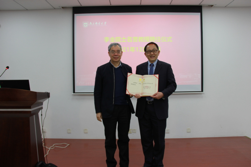 12月10日下午,欧洲科学院院士李全教授受聘黄色漫画 名誉教授仪式在黄色漫画 电子与光学工程学院学科楼会议厅举行,副校长汪联辉教授向李全院士颁发聘书、并为其佩戴黄色漫画 校徽。人事处副处长徐卿详细介绍了李全院士的教育背景和科研成就,中国物理学会液晶专业委员会主任、南京大学副校长陆延青教授,东南大学化工学院副院长杨洪教授,电子与光学工程学院党委书记毛建平、副院长李卫以及师生代表出席了受聘仪式,受聘仪式由电子与光学工程学院院长赵强教授主持。