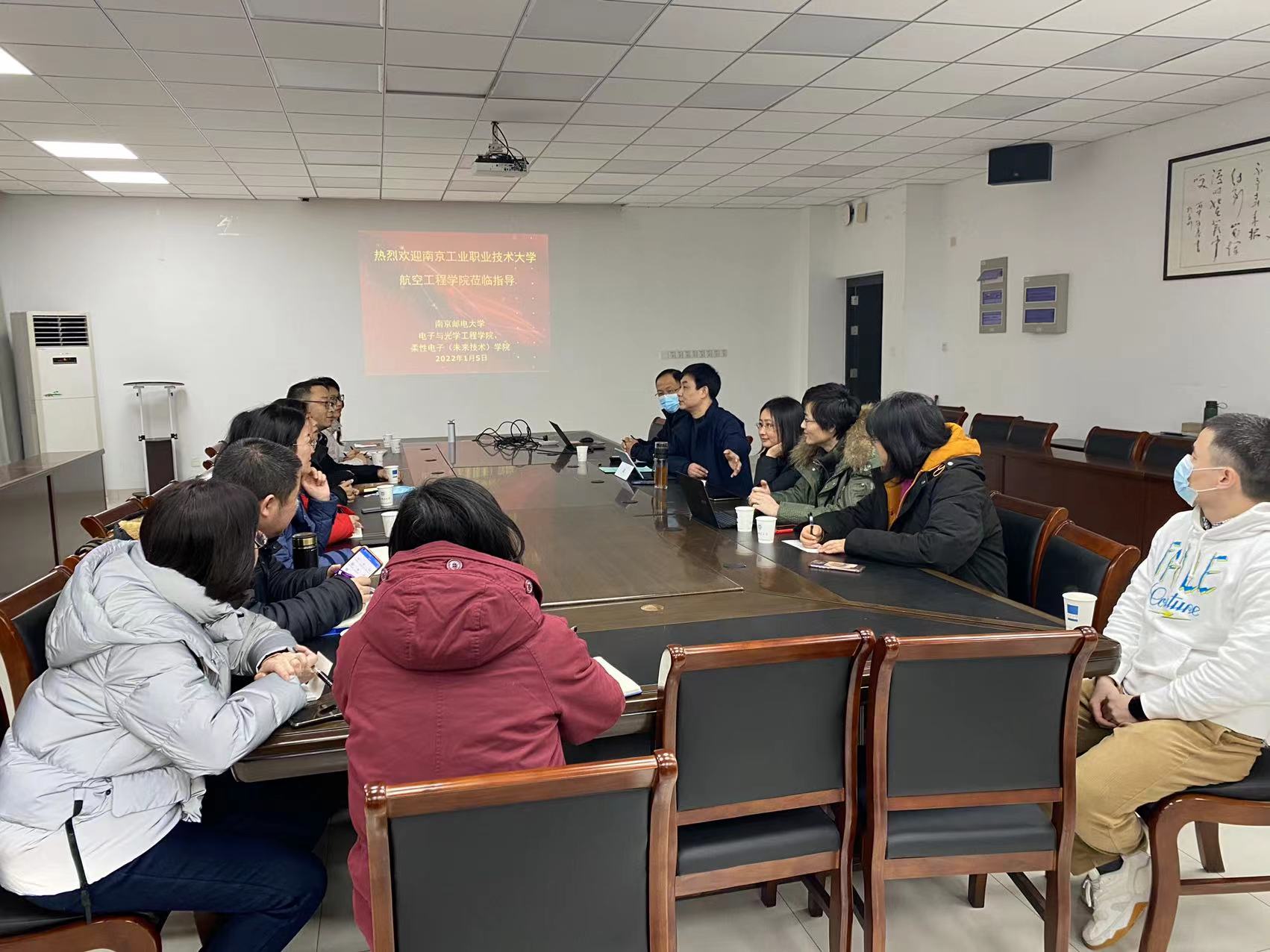 2022年1月5日下午,南京工业职业技术大学航空工程学院在党总支书记傅大梅和院长黄杰的带领下,一行10人来黄色漫画 进行毕业设计工作调研。黄色漫画 副院长程勇,院长助理靳雷生、各系分管实践工作副主任邹建华、夏晓娟、孙晓芸和储鹏参加了调研会。