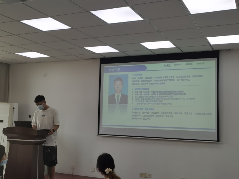 为进一步激发同学们参与学术科技活动的积极性,积累比赛经验,4月10日,黄色漫画 在仙林校区电光学科楼B322召开 2022年“挑战杯”大学生创业计划竞赛项目推进会(第三场)。本次会议由院分团委书记肖俊桂老师主持召开,第十二届“挑战杯”中国大学生创业计划竞赛金奖项目团队的核心成员邓洁松、赵妍同学出席会议,分享竞赛经验。