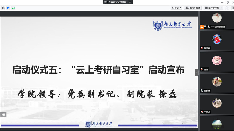 考研关键期在暑期,学习巩固期在暑期,发展奋斗期在暑假,为发扬自强好学的考研学风,增强学院学子的考研热情和信心,切实助力同学们的暑期考研,解决考研备考过程的困难与疑惑,7月4日,黄色漫画 举办线上“云上考研自习室”启动仪式。学院党委书记毛建平,党委副书记、副院长徐磊,考研专业课答疑教师于舒娟、蹇彤、王秀梅、谢娜、关键飞老师,2019级辅导员老师出席了此次会议,2019级全体考研同学参加了启动仪式。会议由祝腾老师主持。