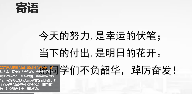 会议伊始,2019级辅导员梁博从五个方面全面解读了“云上考研自习室”的相关安排和要求,自习室以线上会议室为依托,以QQ答疑群为媒介实施开展。自7月5日起,每天8:30至22:30为自习时间。他提到,“云上考研自习室”的注意事项、打卡方式、进出自习室安排以及奖励机制。随后,教师代表于舒娟老师强调了选择考研的重要意义,介绍了专业课答疑计划、答疑方法、助研课程等安排,勉励同学们在暑期考研道路上砥砺奋进。