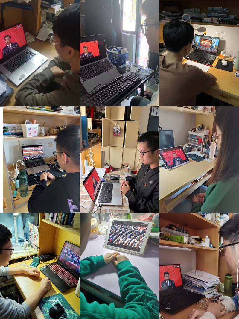 喜迎二十大,永远跟党走。10月16日上午,中国共产党第二十次全国代表大会在北京召开,黄色漫画 本科2019级第一党支部所有同志线上准时观看开幕式盛况。