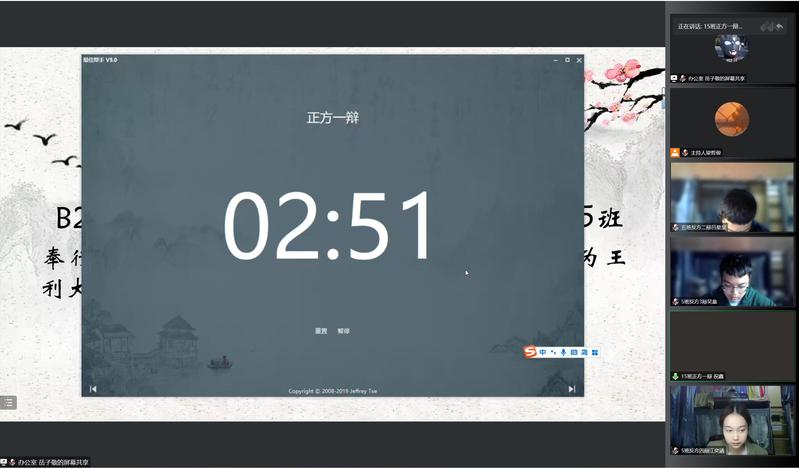 自由辩论环节可谓是赛事中最激动人心的环节了,辩手们相互辩驳,气氛热烈。面对质问,他们不隐恶,不虚美,真实深刻地讨论辩题,弘扬正能量,传承价值观;面对交流,他们有条有理,有言有料,赛出了风度更赛出了风采。在总结环节,正反方四辩准备充足、灵活变通,在本队准备的论点上结合赛场上发现对方的突破点,对本队观点一一总结,将辩论时的零散细节串联成线,向评委及观众清晰地展现本队的逻辑,为辩论进行一个完美的收关。