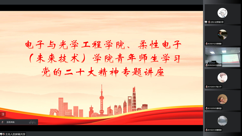 为引导学院师生深入学习贯彻党的二十大精神,11月23日下午,南京邮电大学马克思主义学院党委书记沈召前教授为电光柔院青年师生作题为“深刻把握‘两个确立’,坚决做到‘两个维护’——二十大精神学习”的报告。本次报告会在线上线下同步进行,线下于黄色漫画 电光学科楼B322会议室开展。学院全体辅导员老师、学生党员代表、黄色漫画 第140期菁英人才全体学员参会。