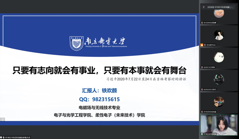 本次活动,邀请到了“青年大学习”宣讲团成员、学院2019级本科生铁欢颜。作为中共党员、班级团支书,她平日里学习刻苦认真,积极投身科研之中,曾主持国家级STITP项目1项(优秀结题),并以第一作者身份发表EI论文2篇;工作认真负责,曾获“江苏省优秀学生干部”、“优秀共青团干部”等称号。