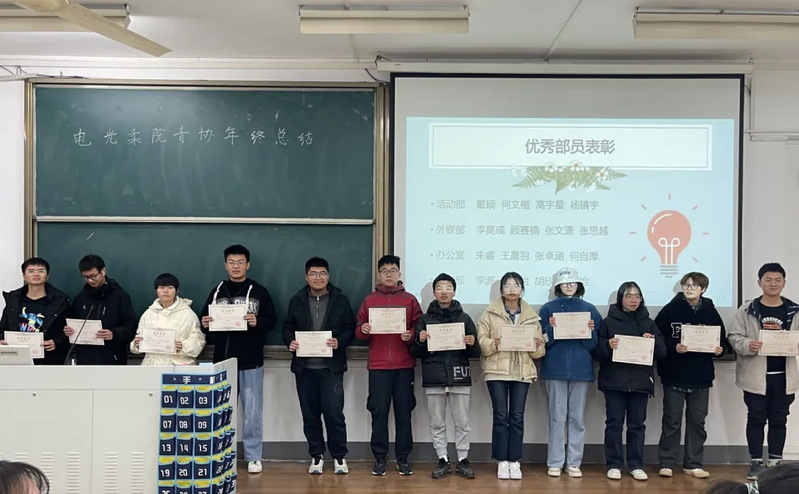 总结会议结束之后,由主席团及各部门负责人部长对本年度表现优秀的中干及部员进行了颁奖合影。至此,2022年电光柔青年志愿者协会年终总结大会暨表彰大会圆满成功。