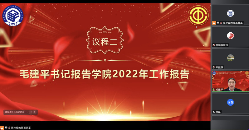 学院分工会临时负责人、院党委副书记徐磊作了学院2022年工会工作报告,并表示,学院分工会将要以党的二十大精神为指导,始终坚守政治方向、维护发展大局,持续强化组织本领、提升工作成效;将始终把“为教师服务、促学院发展”的双赢理念作为分工会工作重心,关心教师利益、维护教师合法权益,做好教师服务保障,为实现全体教职工的健康、平安、幸福与美好发展愿景,为实现学院高水平、可持续发展而不懈奋斗。