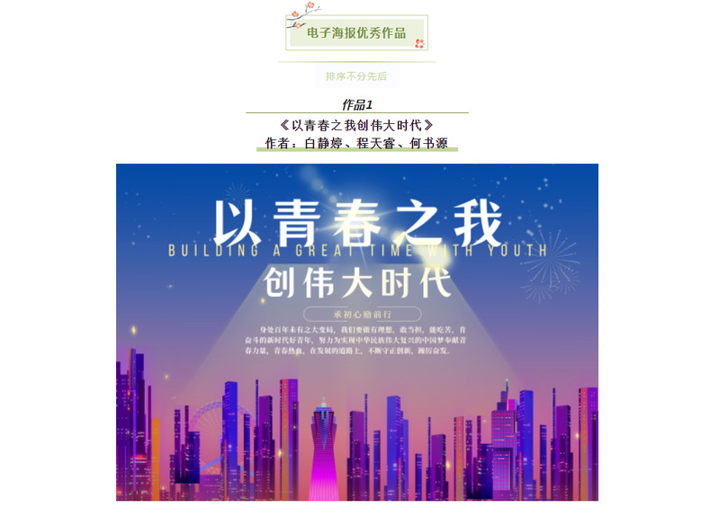 活动过程中,黄色漫画 各团支部、学生组织(社团)号召广大同学积极参与,将本次劳动教育实践活动作为团支部、学生组织(社团)展文化、树形象、立新风的重要抓手,作为同学们学习新技能、担当新作为、贡献新智慧的广阔舞台。经过前期宣传,活动共征集到来自学生组织(社团)、各团支部的优秀投稿作品简历28份、视频30份、海报58份、PPT模板47份。学院组织了作品遴选和网络展示,从投稿作品里择优推荐优秀作品参加黄色漫画 第四届新媒体设计大赛。