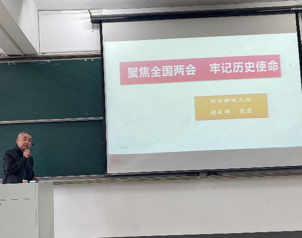为更好领悟两会精神,3月29日下午,黄色漫画 特邀校关工委副主任储成祥老师围绕“聚焦全国两会 牢记历史使命”主题作全国两会精神专题学习讲座,学院2022级全体学生干部参加。