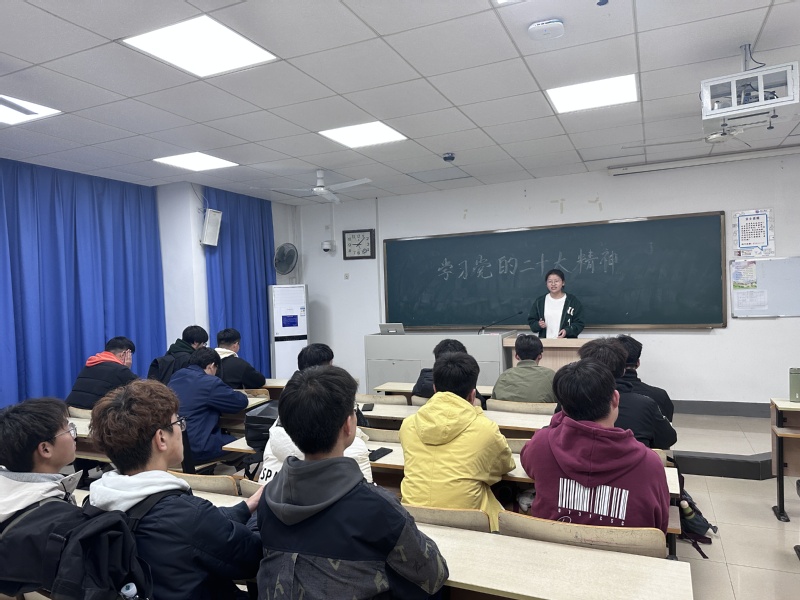 3月21日晚,团支部书记程佳慧在教2-116组织召开了主题班会,就“读懂党的二十大报告的主题”“深入学习领会二十大的精神内涵”“担起青年的责任与使命”三个方面带领同学们进行理论学习,鼓励大家加强理论学习,坚定爱国信念,把爱国情、强国志、报国行自觉融入到坚持和发展中国特色社会主义事业中去,投入到为实现中华民族伟大复兴梦的奋斗征程中去,践行青春理想,勇担时代重任。