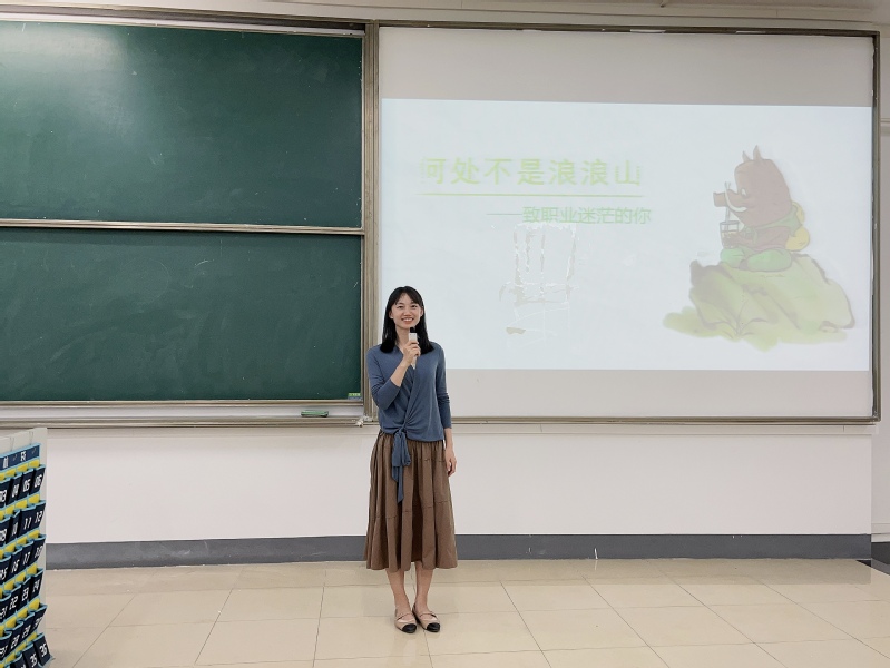 活动伊始,李老师以“你画我猜”的形式引出“浪浪山”的概念,借助《小妖怪的夏天》中小猪妖的角色来引导大家回忆儿时的梦想并思考是什么导致了梦想的改变,让大家明白随着年龄的增长和阅历的增加,大家的职业目标会更加切合实际。