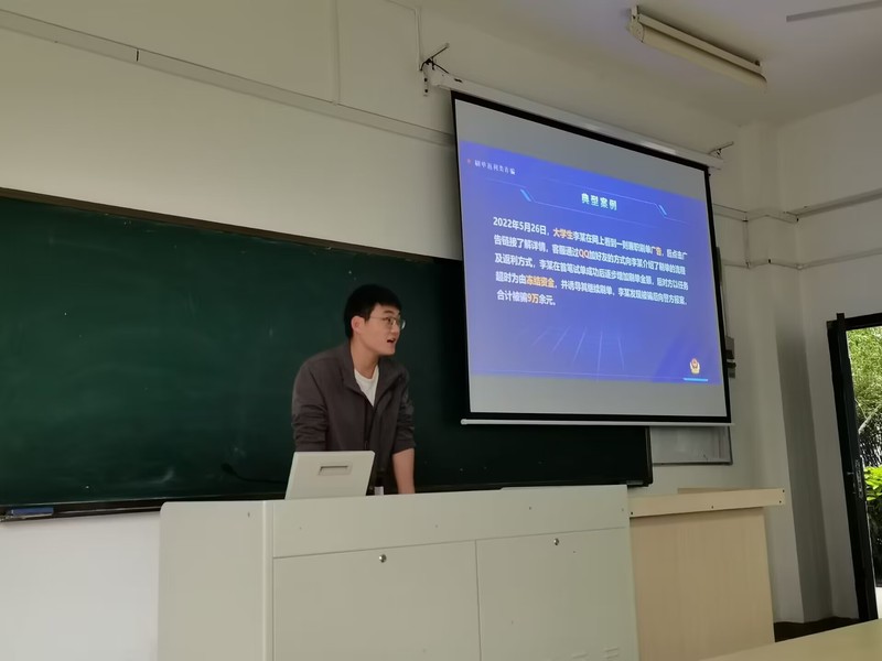 本次活动包含线下反诈主题班会与线上反诈信息交流会两部分。线下班会上,班级安全员详尽介绍了以“校园贷”资金诈骗、“杀猪盘”交友诈骗、网络刷单及网游装备虚假交易电信诈骗等常见校园诈骗类型,并通过个人反诈经验分享、近期典型案例报告及经典犯罪手法剖析的方式展开介绍了切实可行的校园诈骗防范措施;线上交流会中,安全员定期发布由公安部门精心拍摄的反诈视频,同学们观看学习视频后有感而发,相互检查手机中是否安装有“纸飞机”、“事密达”等协助诈骗分子进行网络信息犯罪的软件,并在班级交流群中展开了一系列关于校园诈骗防范方法的讨论,面对一些针对反诈经历的精彩发言,同学们纷纷点赞。