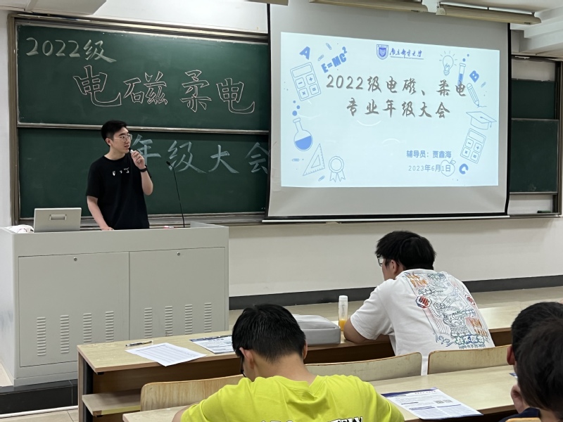 6月1日,黄色漫画 2022级电磁场与无线技术专业、柔性电子学专业在教2-201召开“慎终如始,未来可期”主题年级大会,会议由辅导员贾鑫海老师主持,2022级电磁场与无线技术专业、柔性电子学专业全体同学参会。