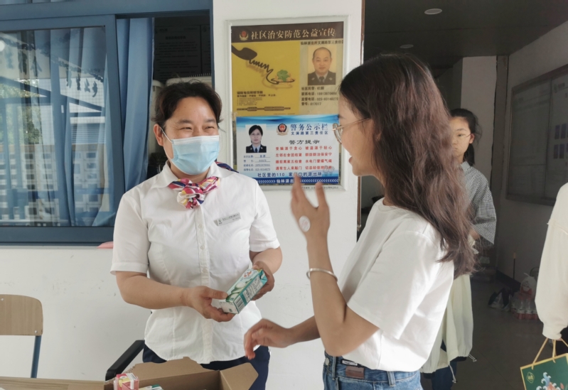 学生代表给宿管阿姨们送去了节日礼物,感恩阿姨们四年里的关心和照顾,祝福阿姨们以后生活平安如意。宿管阿姨们看着同学们毕业在即,激动之情难以言表,希望孩子们以后阳光快乐,前程似锦。
