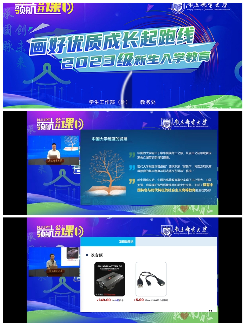 “领航公开课”围绕自主学习意识养成、科研素养能力提升、职业生涯规划设计、心理健康教育引导等专题,邀请课程教学名师、生涯规划导师、心理咨询专家、优秀学子代表组建宣讲团,抓住入学关键期,打造入学教育“领航公开课”,画好优质成长起跑线。“领航公开课”通过前置入学教育,帮助新生尽快启动课程预习,养成良好学习习惯,科学制定学业规划;通过身边人讲身边事,充分发挥教学名师、学生榜样的引领示范作用,激励新生以榜样为镜,自觉把个人的理想追求融入国家和民族的事业中,努力成为担当民族复兴大任的时代新人。“领航公开课”得到了广大新生们的热烈欢迎与好评,新生们表示,在学习中,不仅学到了新知识、新本领,还找到了学习方向,他们对未来充满了信心和期待。
