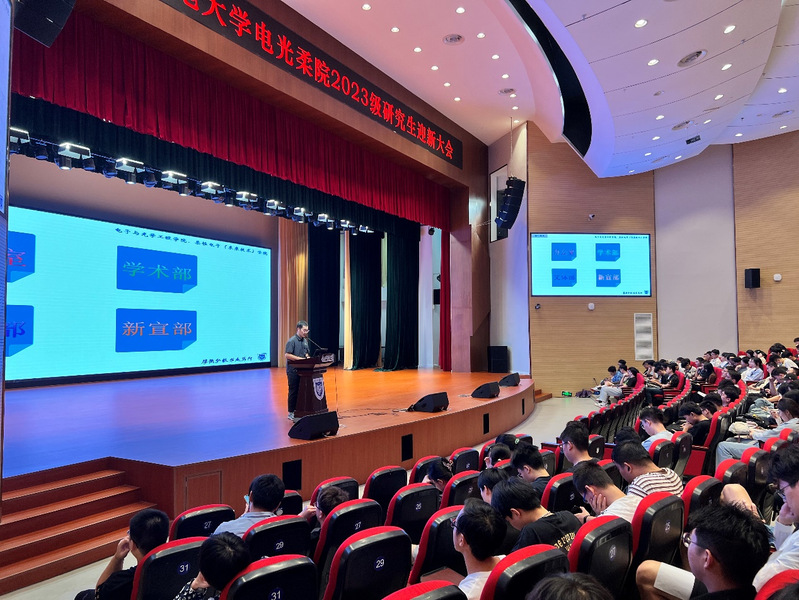 会上,陈建飞教授首先为全体2023级硕博研究生开展了研究生培养入学教育。陈建飞教授从教学培养、学位管理、培养方案、科学道德与学风建设、学生行为准则等五方面向同学们详细地介绍了学院对于研究生培养的要求和期待。他要求全体研究生热爱祖国,遵纪守法,培养严谨的治学态度、恪守学术道德和职业规范、培养良好的心理素质,勉励同学们要加强主观能动性,培养对专业的热爱,聚焦研究方向,勤奋不懈努力学习,不断提升科学研究能力和学术交流能力,熟练掌握一门外国语,早日成长为栋梁之才。
