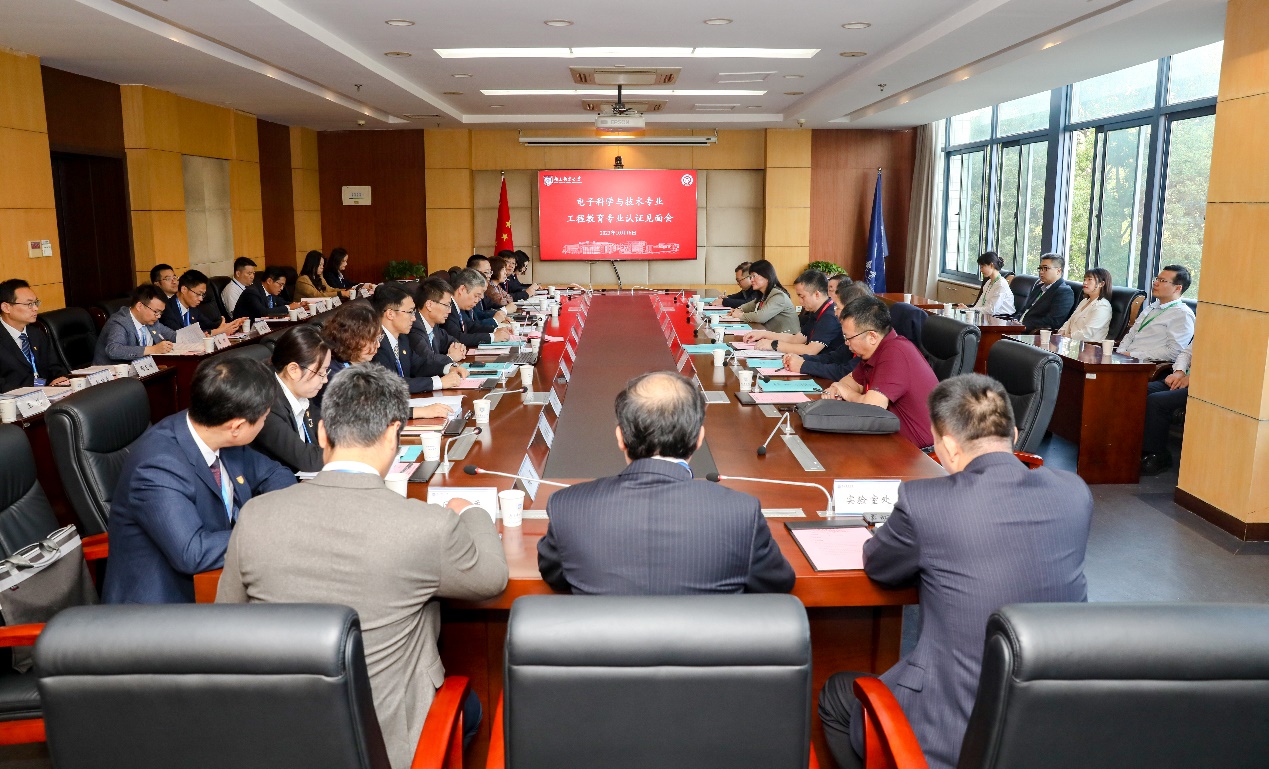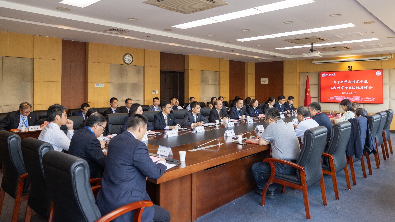 10月16日上午,认证专家组与专业负责人见面会在行政楼第一会议室召开。专家组全体成员,黄色漫画 党委书记郭宇锋教授、校党委常委、副校长刘青山教授、副校长赵强教授、教务处、人事处、招生就业处、学生工作处、团委、实验室建设与管理处、教学质量监控与评估中心、财务处、国际合作交流处、信息化建设与管理办公室、工程训练中心、图书馆等部门负责人,电子科学与技术专业所在学院负责人和骨干教师参加会议。