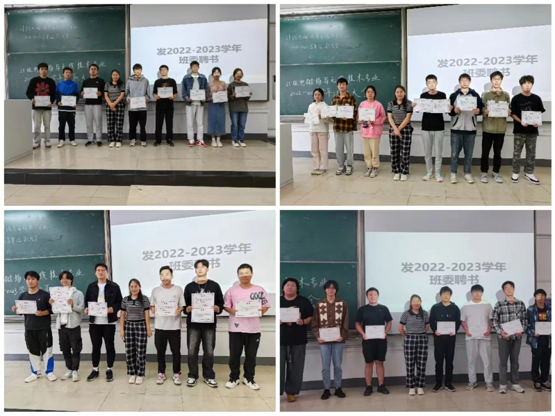 会议最后,主持人刘子诚同学带领所有与会班干部宣誓,辅导员古丽老师为2021级电磁场与无线技术专业全体学生班干部颁发聘书。