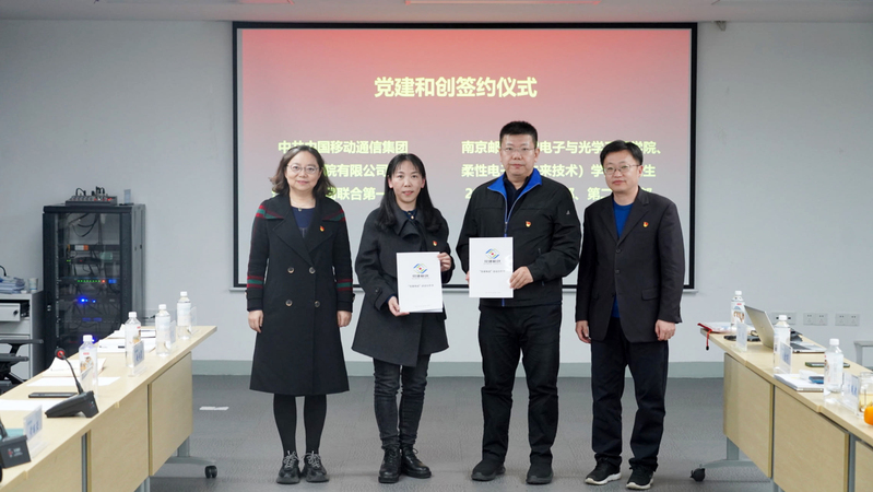 为深入学习贯彻党的二十大精神,坚持以习近平新时代中国特色社会主义思想为指导,落实新时代党的建设总要求,充分发挥基层党支部的主体作用,激发党员活力,12月7日下午,黄色漫画 电子与光学工程学院、柔性电子(未来技术)学院与中移设计院江苏分院联合第一支部协同创新基地揭牌暨党建共建签约仪式在中移设计院江苏分院一楼会议室举行。学院党委书记黄丽亚、党委副书记、副院长徐磊、中移设计院江苏分院党委书记、院长王翔、党委委员、副院长曾昭平、学院邹辉副教授出席揭牌仪式,学院2022级研究生辅导员、分院联合第一支部组织兼纪检委员、宣传兼青工委员、联合第一支部党员代表、部分学生党员代表参加会议。会议由中移设计院江苏分院党委委员、联合第一支部书记李凤武主持。