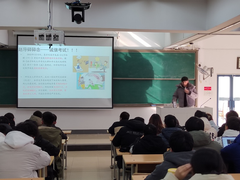为严肃考风考纪,进一步提升同学们的诚信意识,12月20日下午,黄色漫画 本科2021级光电信息科学与工程专业年级大会在教四102顺利举行。辅导员赵昱莼老师主持本次大会,2021级光电信息科学与工程专业全体同学参会。