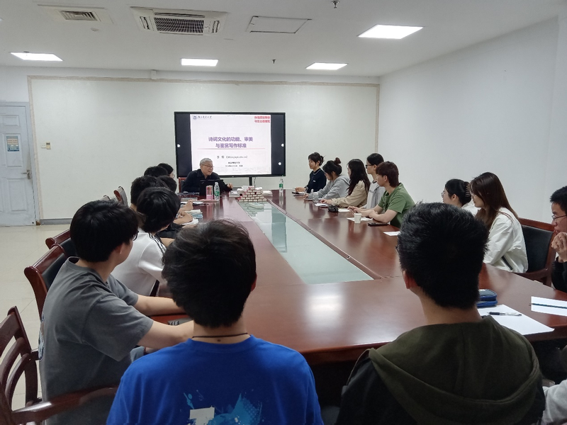 李雷教授讲课幽默风趣,用文理结合的思想带领大家走进诗词。他阐述了诗词与科研、与人生的紧密联系,叙述了诗词所具有的表达、反映、服务三大功能,指出学诗可以情飞扬、志高昂、人灵秀。李教授呼吁南邮人要能够从诗词中培养想象力,培养创新精神,为科技创新和社会发展贡献力量。