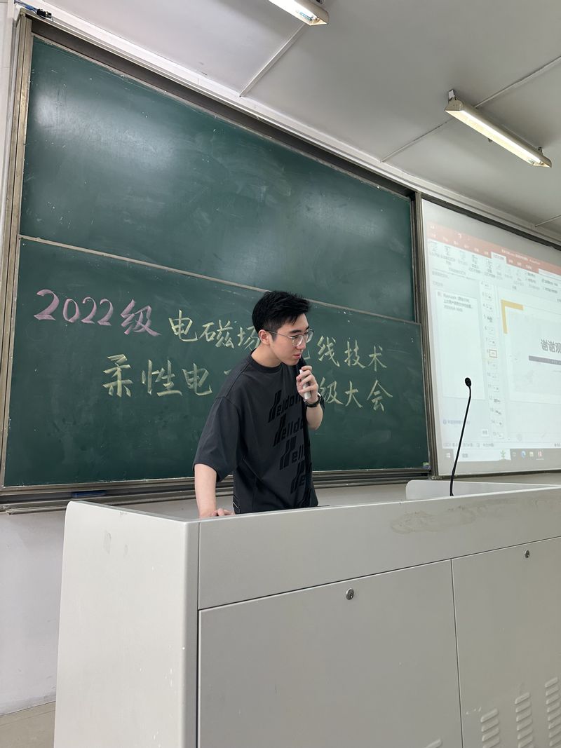 为进一步推进“启思·明德·砺学”主题教育活动,切实做好教育教学审核评估评建工作,持续推进学风建设、校园文明建设、班级日常建设等, 6月5日,黄色漫画 2022级电磁场与无线技术专业、柔性电子学专业在教3-412召开年级大会。会议由贾鑫海老师主持,全体学生参加。