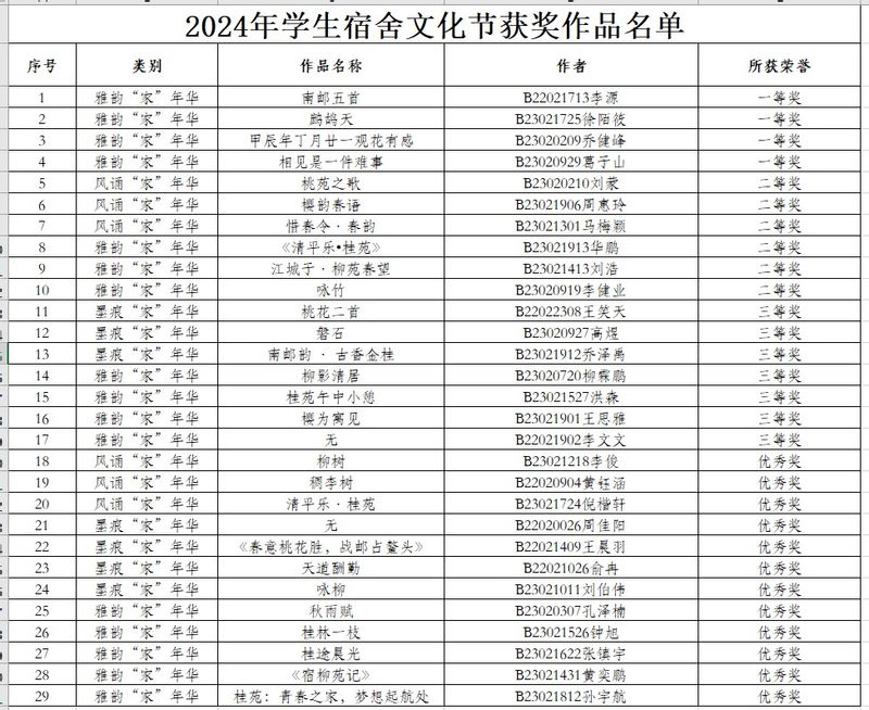 经学院积极组织申报,广大同学积极响应、热情参与,共选送宿舍风诵“家”年华作品15件、宿舍墨痕“家”年华作品31件、雅韵“家”年华作品60件,学院特色活动2项。经评审,学院荣获“优秀组织奖”,祝腾、梁博两名教师获评“优秀指导教师”,4件作品获一等奖,6件作品获二等奖,7件作品获三等奖,12件作品获优秀奖。