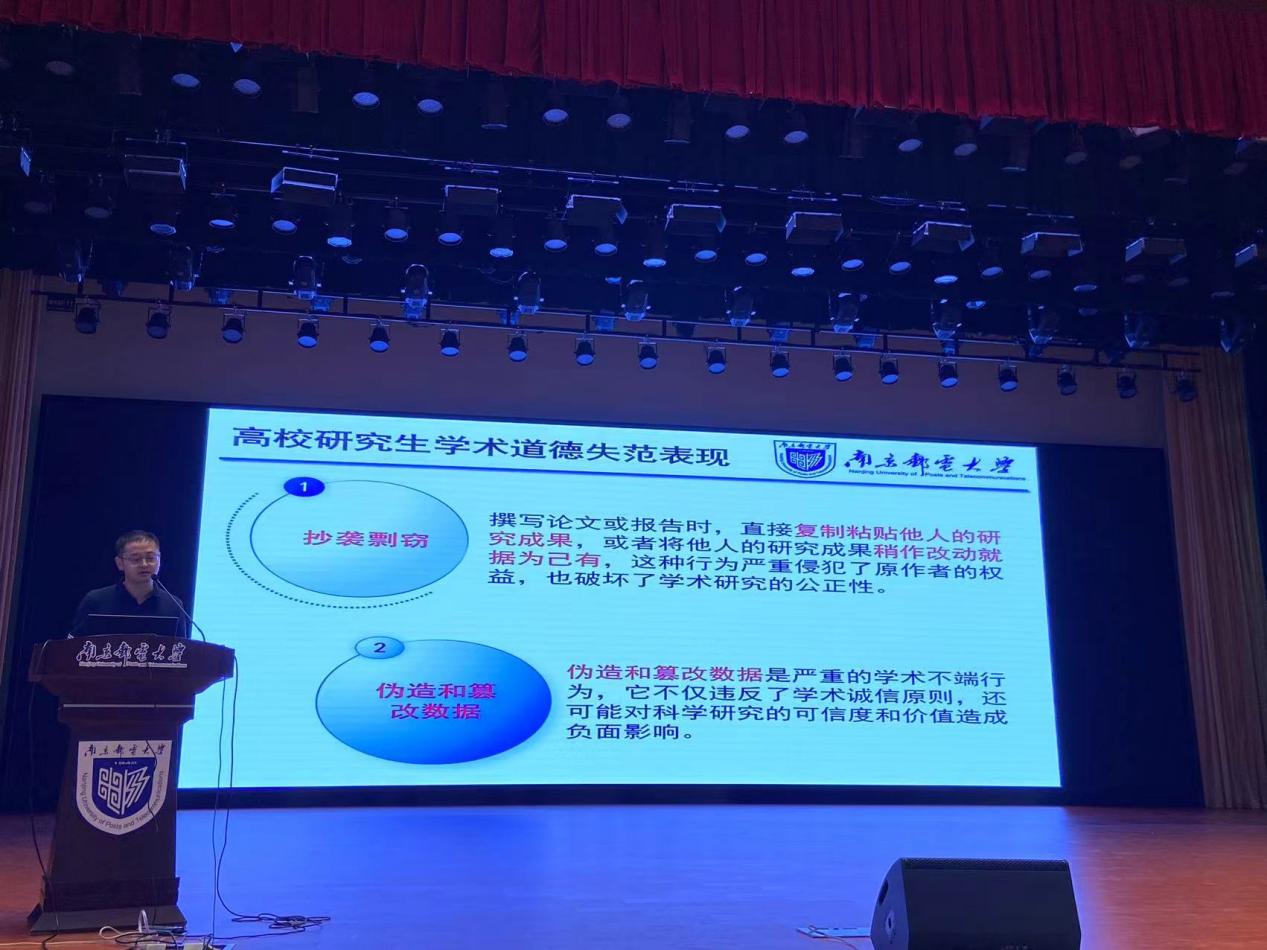 新学期伊始,电子与光学工程学院、柔性电子(未来技术)学院迎来了秋季学期入学的研究生新同学。为帮助2024级研究生更好地融入新的学习科研环境和校园文化生活,进一步提升研究生学术道德和学术规范能力,培养良好的学风,顺利完成本研对接、硕博转换。9月25日晚,电子与光学工程学院、柔性电子(未来技术)学院在仙林校区安恒青春剧场举行2024级研究生新生大会暨“学术道德规范”讲座。学院马云副院长出席活动,辅导员郑景文老师、薛明老师及研究生新生参加活动。