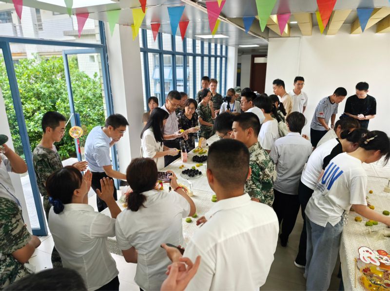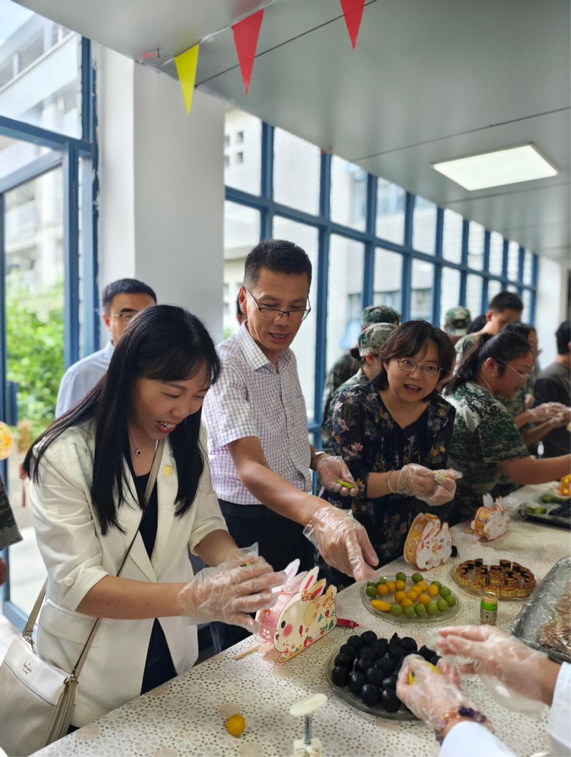 活动现场热闹非凡,师生齐心协力,制作出一盏盏花灯。并在面点师傅的指导下分组合作,亲手揉面、包馅、压模,做出自己的手工月饼。本次活动特别邀请了少数民族学生积极参与,在手工月饼制作过程中,不同民族的同学们手拉手、心连心,彼此之间的友谊在此刻汇聚,各民族学生就像石榴籽一样紧紧拥抱在一起。