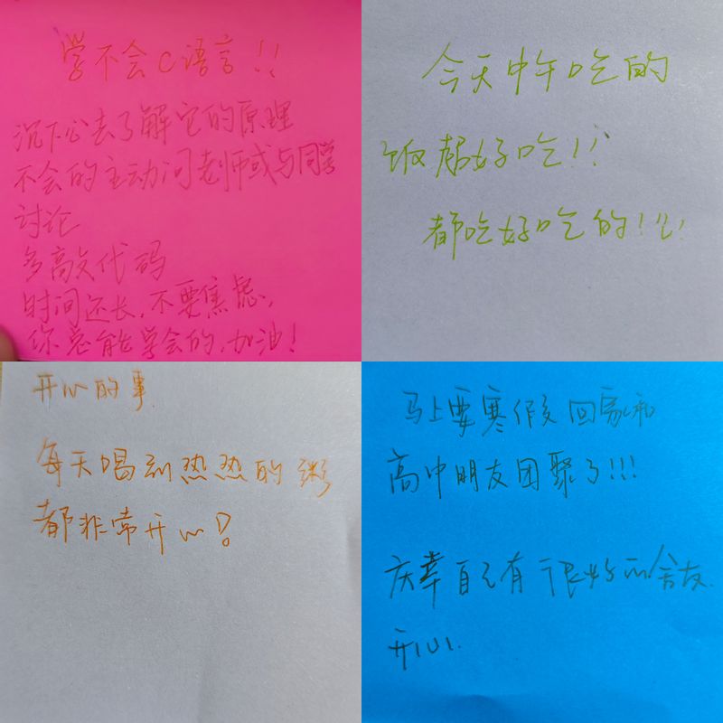 活动过程中,学院心协特别注重对参与活动同学的正向引导,鼓励大家以正确、积极的方式表达情绪,确保活动开展过程中营造出健康向上的氛围。本次活动共有四百余名学生参与,他们留下了属于自己的烦恼或快乐,忧愁或憧憬,用笔尖为紧绷的生活打开了情绪的宣泄口。