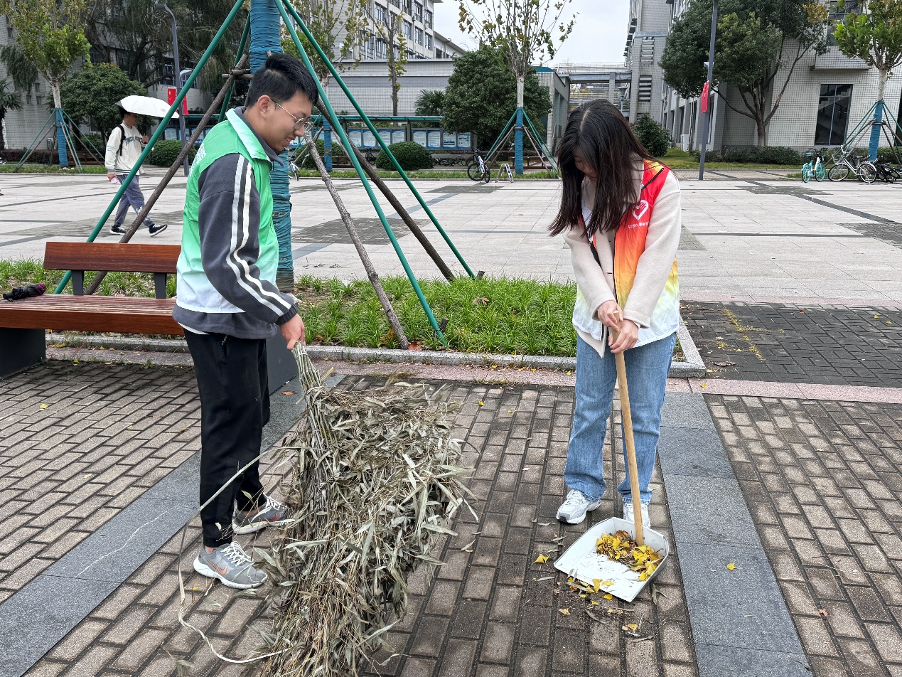 本次活动党支部全体党员积极响应,共同参与到校园环境的美化工作中。党员们手持扫帚、簸箕等清洁工具,对校园内的道路进行了细致的清扫。在活动中,党员们分工合作,积极清理校园内的垃圾和落叶,以实际行动践行环保理念,不仅美化了校园环境,也增强了党员之间的团结协作。