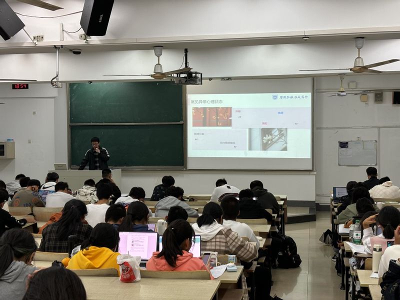 随后,江重九老师就学校心理健康工作网络、心理咨询中心提供的服务、常见的几种异常心理状态、及其疏导方法等方面进行了介绍,讲解了预防心理健康问题的多种方法,减少了同学们对心理健康问题的如何预防的疑问,取得了良好的成效。随后进行了新生心理测评,测评采用标准化的心理量表,通过问卷形式对新生进行心理评估。测评内容包括情绪状态、人际交往、自我认知等多个方面,旨在全面了解新生的心理状态和需求。测评过程中,同学们积极配合,认真填写问卷,展现出了良好的心理素质和态度。