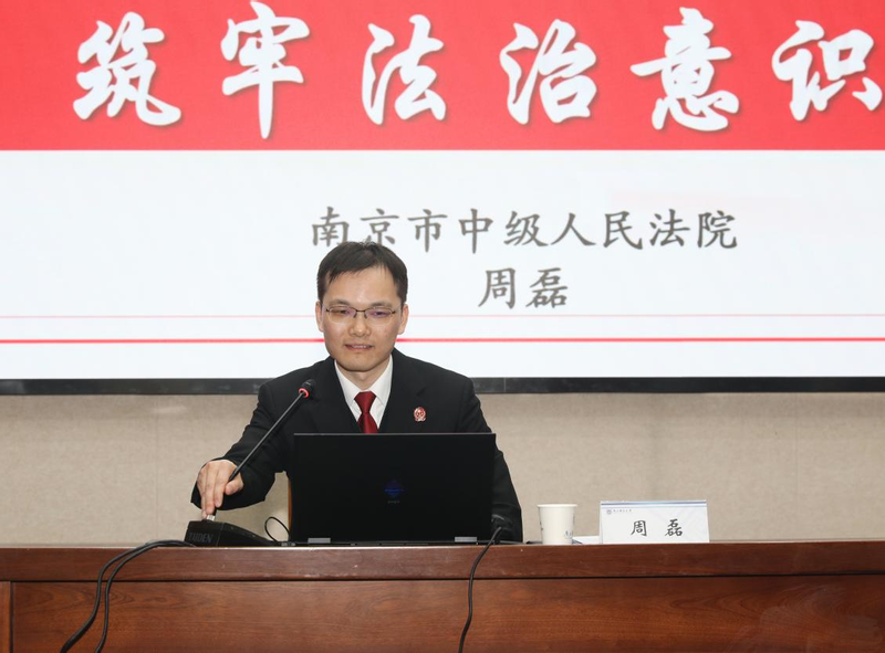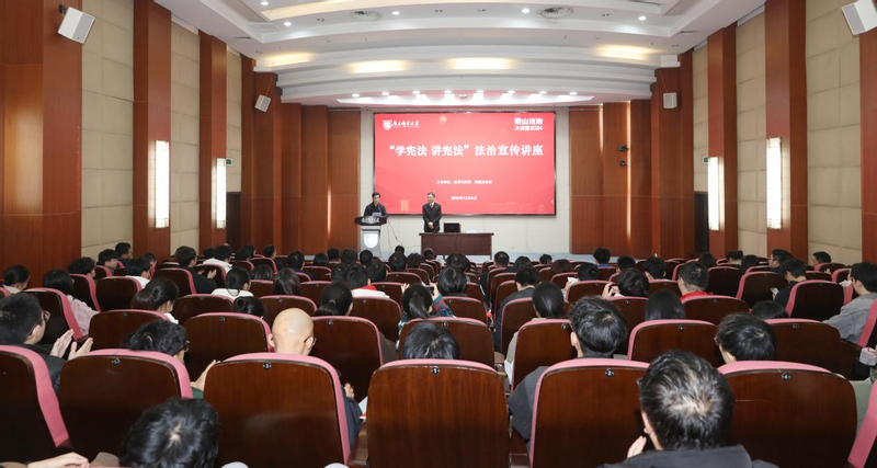 12月6日,黄色漫画 在仙林校区中天科技报告厅召开普法讲座,南京市中级人民法院行政审判庭副庭长周磊应邀出席并主讲,黄色漫画 师生代表积极参加。周磊副庭长以“弘扬宪法精神 筑牢法治意识”为题,从宪法的庐山真面、生活中的宪法“关键词”、做宪法的自觉遵守者三个方面展开普法教育。他向师生介绍了宪法的发展史、宪法的特征、宪法的基本原则,并结合真实典型案例,提出要树立宪法至上的观念,认真学习宪法知识,养成宪法思维,在具体的生活场景中用宪法来维护国家利益、公共利益和公民权利。
