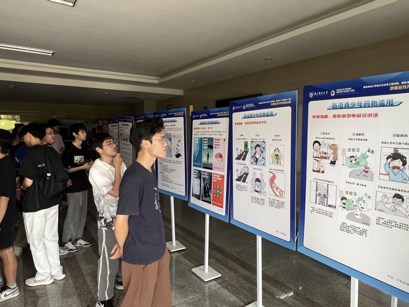6月30日,一场主题鲜明、内容丰富的“南邮电光柔学院禁毒宣传月科普知识展”在电光学科楼一楼大厅成功举办。展览紧扣“防范青少年药物滥用”年度主题,系统展示了毒品(特别是伪装性强、危害巨大的新型毒品)的种类、特征、巨大危害,深入剖析了药物滥用的诱因与严重后果,并着重强调了国家相关法律法规。展览设计科学、内容详实、形式直观,吸引了学院领导、全体辅导员以及来自各年级各班级的学生代表踊跃参观。现场气氛热烈,师生们或驻足细看展板内容,或围绕展品深入交流讨论,对毒品的危害性有了更为深刻、直观的认识。此次展览有效强化了全院师生共同抵制毒品、参与禁毒斗争的决心,营造了强大的校园禁毒声势。