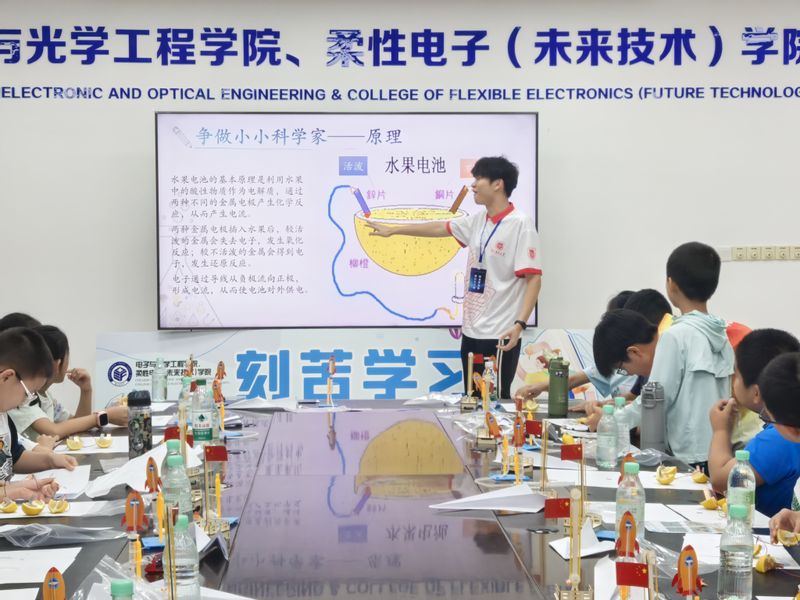 在崇尚科学模块中,科技小发明制作体验活动精彩纷呈。小朋友们在学院老师和志愿者的带领下,利用柠檬等材料制作水果电池。他们按照步骤连接电路、安装电极,看着小灯泡在柠檬的“能量”驱动下亮起,脸上洋溢着兴奋与自豪的笑容。此次活动让小朋友们亲身体验了科学的神奇,激发了他们对科学技术的浓厚兴趣和创新思维。