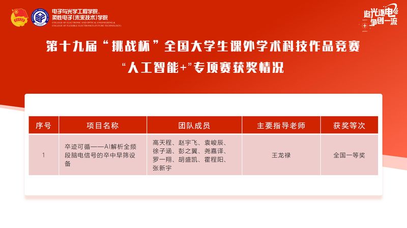 11月3日,刚刚闭幕的第十九届“挑战杯”全国大学生课外学术科技作品竞赛终审决赛,学院师生刷新历史最好成绩!学院在主体赛获全国特等奖1项(全校唯一)、一等奖1项;“揭榜挂帅”专项赛获全国特等奖2项、一等奖2项;“人工智能+”专项赛获全国一等奖1项。