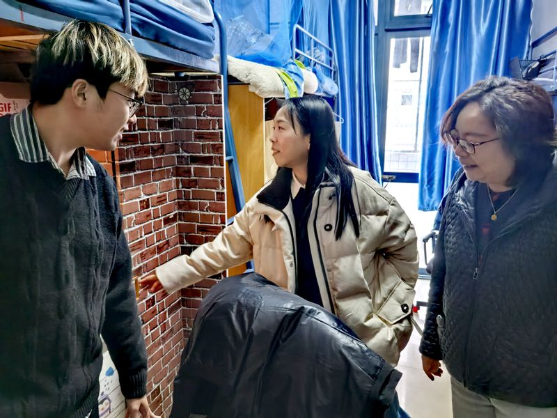 走访大三学生宿舍时,两位书记关注同学们当前的学习生活适应情况、专业课程学习进度以及未来的发展规划初步构想。她们鼓励大三同学要夯实专业基础,积极参与科研实践与学科竞赛,尽早明确发展目标,为未来的升学和就业做好充分准备。